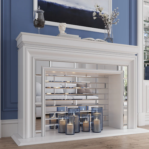 Mirror tiles are an exceptional choice to decorate a fireplace surround. They transform the entire interior decor and create a unique, striking design element in the living room. This mirror tile brings the mesmerizing combination of light and fire, and upscale traditional fireplace into a modern and sleek space.